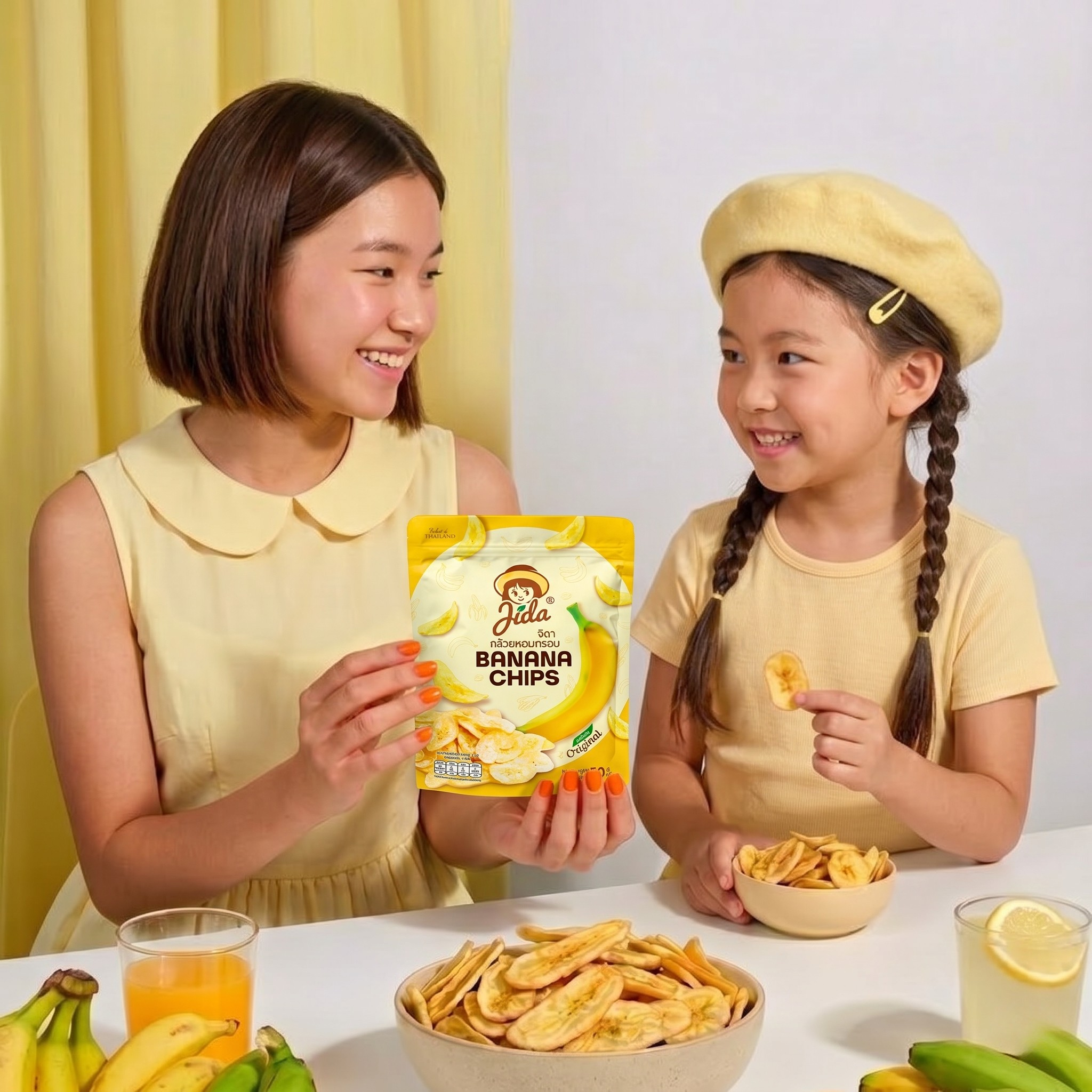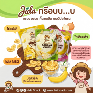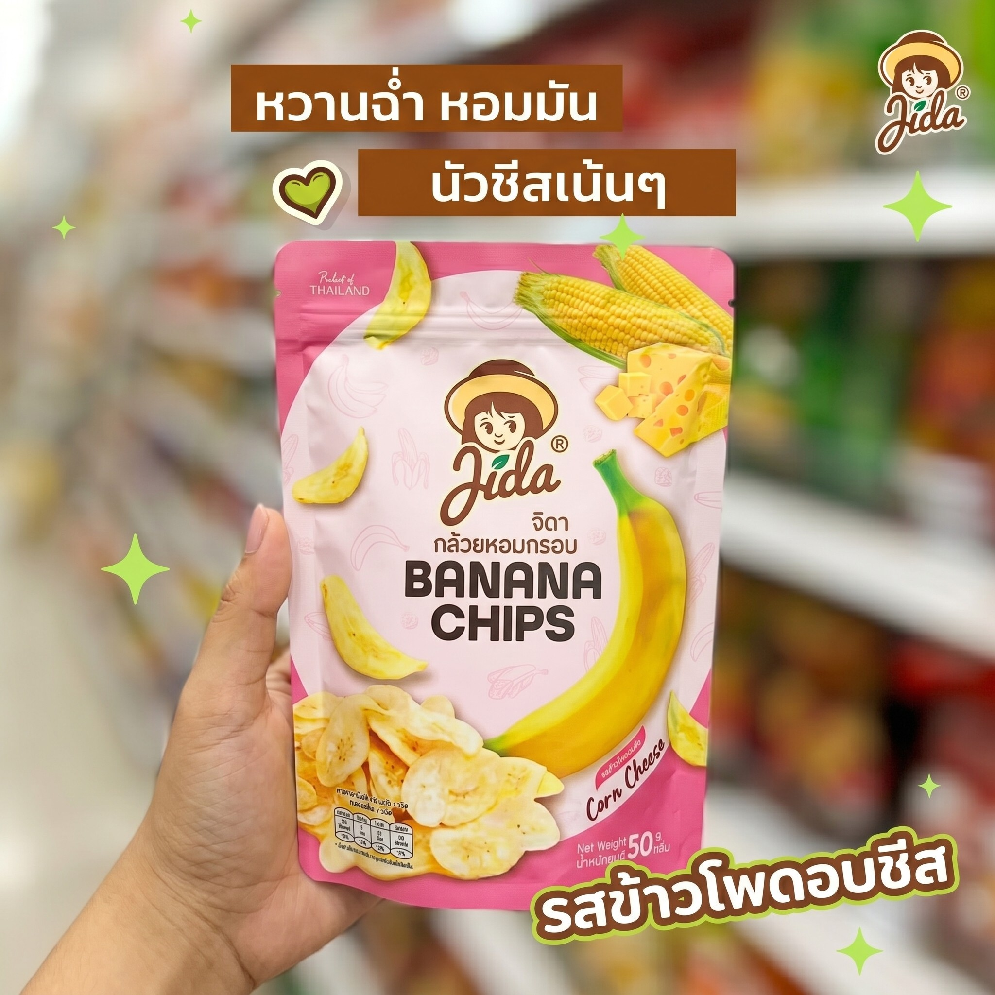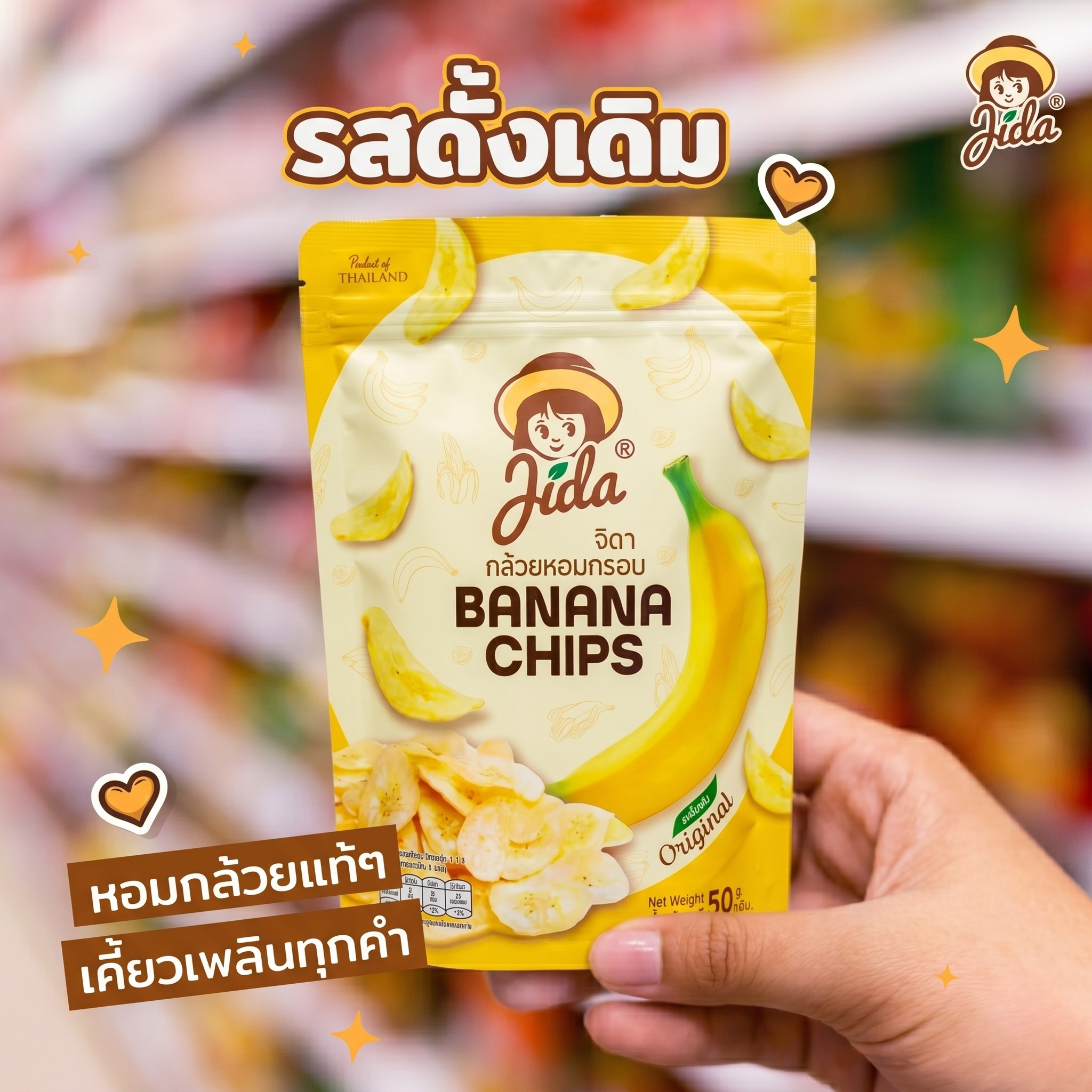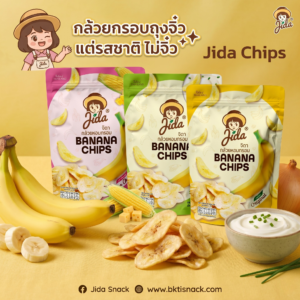 📌Jida ใส่ใจผู้บริโภคโดยการผลิตขนมกล้วยหอมทองทอดกรอบ 100% ที่เต็มไปด้วยคุณประโยชน์ และยังมีให้เลือกได้หลากหลายรสชาติ ขนมกล้วยกรอบของเราผลิตจากโรงงานที่ได้รับมาตรฐาน GMP, HACCP