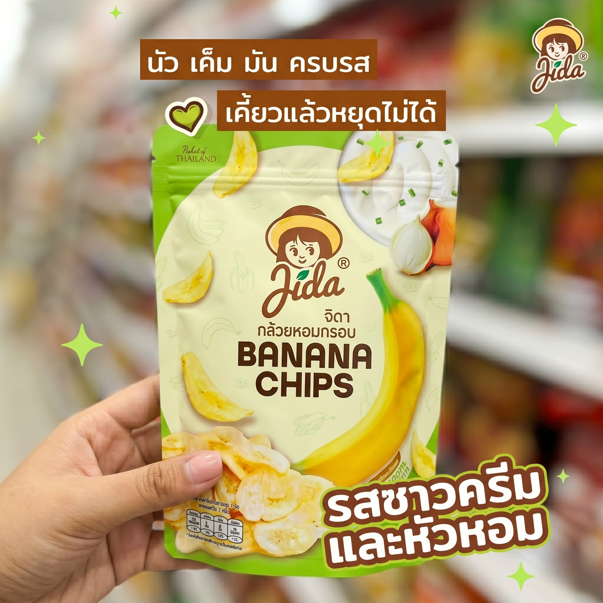 Jida Chips กล้วยหอมกรอบ รสซาวครีมและหัวหอม 50 กรัม