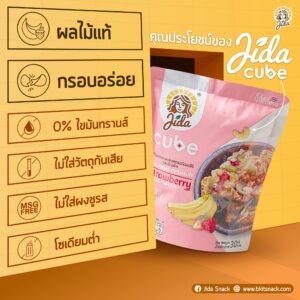 Jida Cube กล้วยกรอบผสมสตรอว์เบอร์รีและธัญพืช ขนาด 30 กรัม