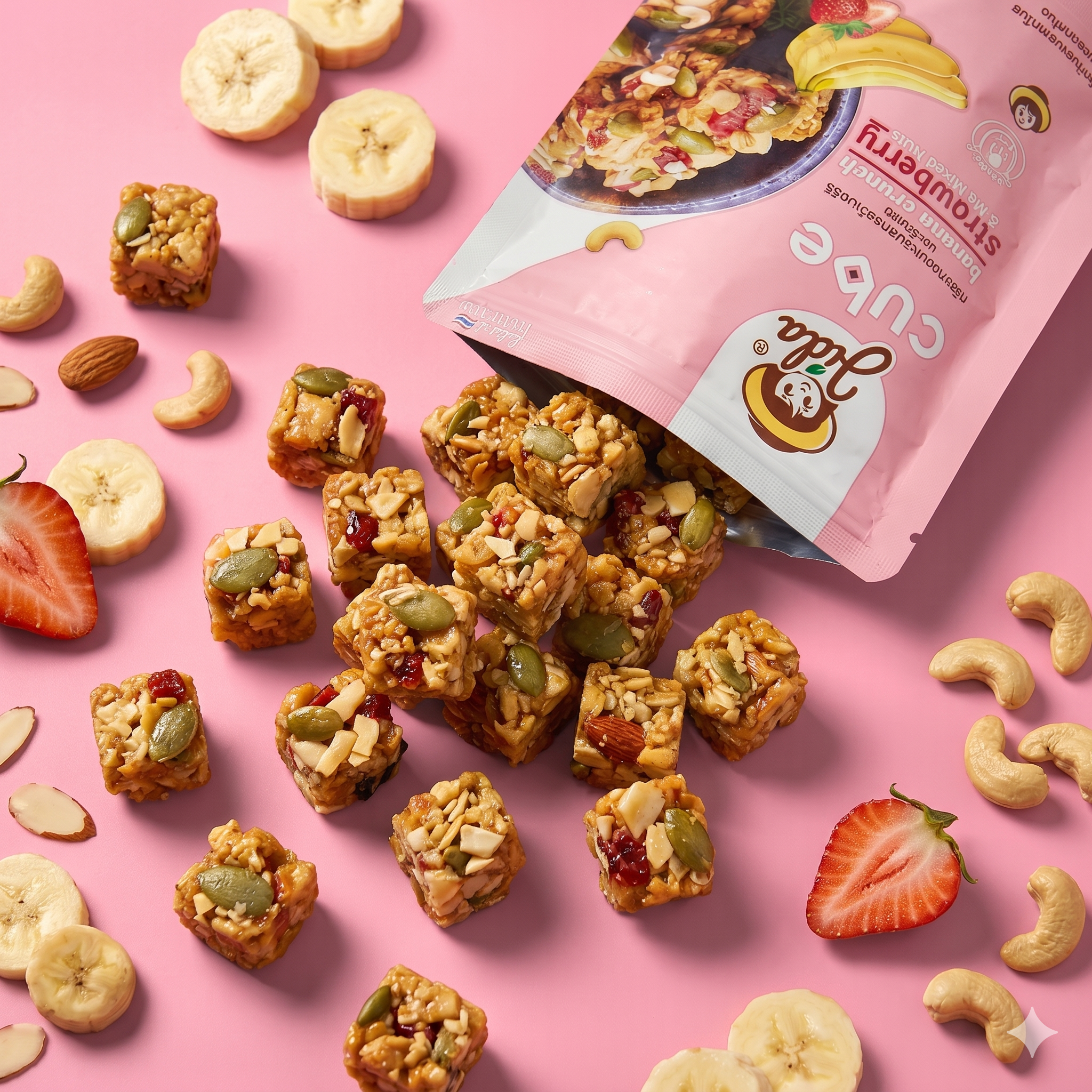 ✨ Jida Cube อร่อยกรุบกรอบ เพลินไปกับ texture ที่เข้ากันอย่างลงตัวของธัญพืชต่างๆและสตรอว์เบอร์รี